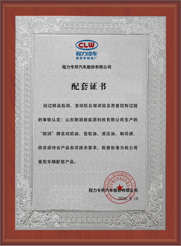 程力汽車配套證書