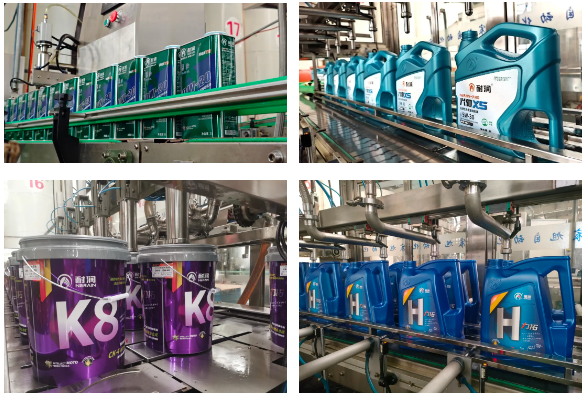 從空瓶到成品:每一步都是對精度的挑戰(zhàn),潤滑油成品進行自動定量灌裝,確保油量精準無誤,擁有1L、4L、18L各型號多條灌裝流水線。