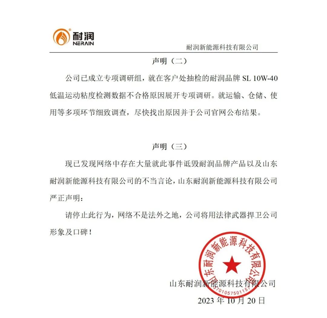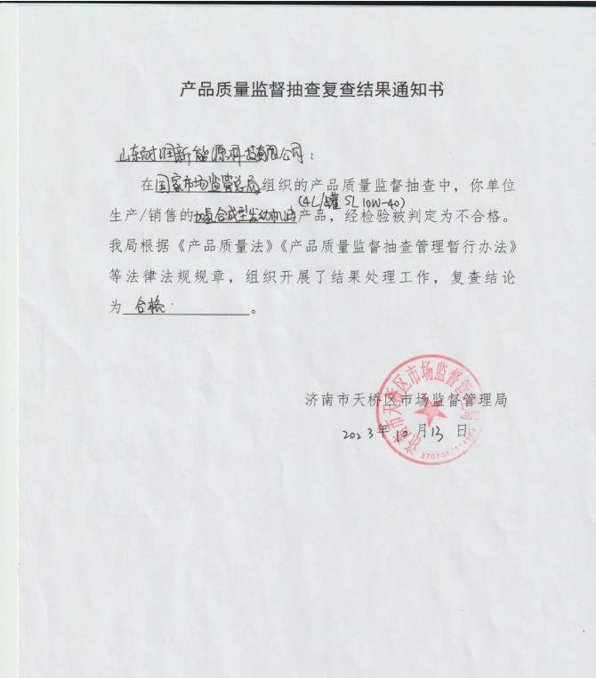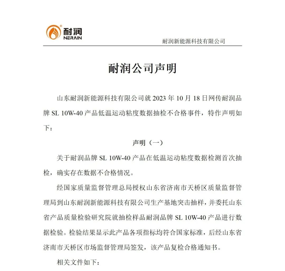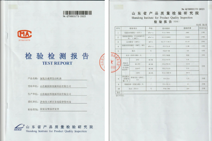 官方聲明!耐潤(rùn)潤(rùn)滑油質(zhì)量檢驗(yàn)研究院檢驗(yàn)合格!